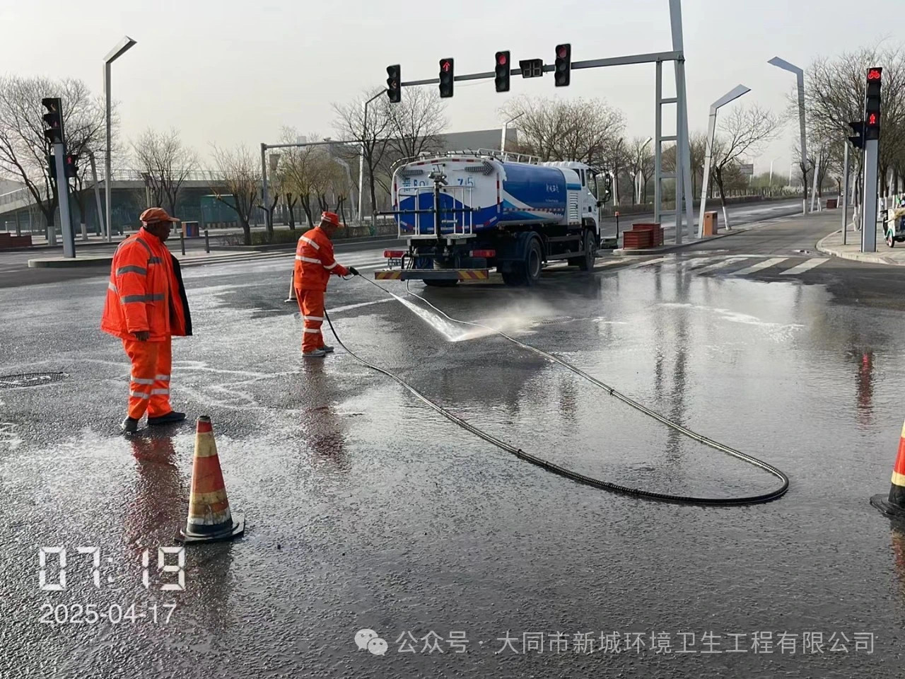 公司加大機械化作業(yè)力度,調派霧炮車、灑水車、濕掃車、高壓沖洗車等,對轄區(qū)重點區(qū)域實施循環(huán)作業(yè)。通過“噴霧降塵+高壓沖洗+機械清掃+人工保潔”的組合模式,有效減少路面揚塵和空氣顆粒物濃度,重點路段抑塵作業(yè)頻次提升至每小時。